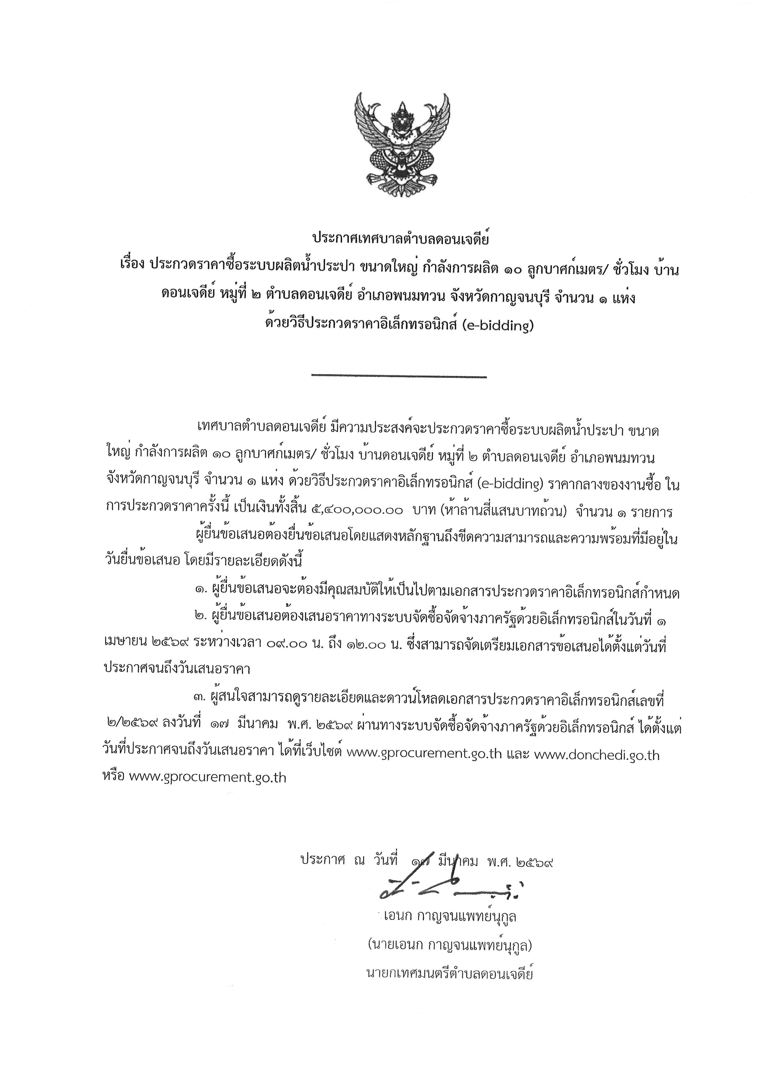 ลิขสิทธิ์ © 2564 เทศบาลตำบลดอนเจดีย์ จังหวัดกาญจนบุรี สงวนไว้ซึ่งสิทธิทั้งหมด. เทศบาลตำบลดอนเจดีย์ อำเภอพนมทวน จังหวัดกาญจนบุรี โทร. 0-3454-0442